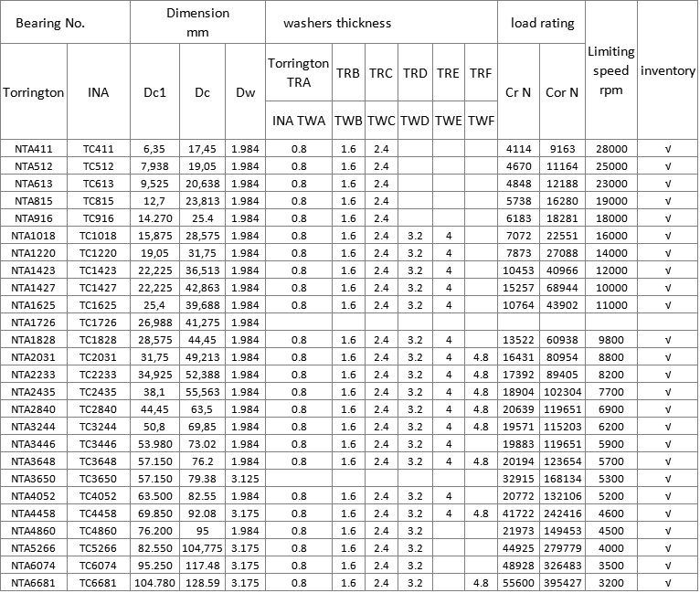 Axial needle roller bearing NTA (TC), single direction, suitable for combination with axial bearing washers TWA, inch series.
